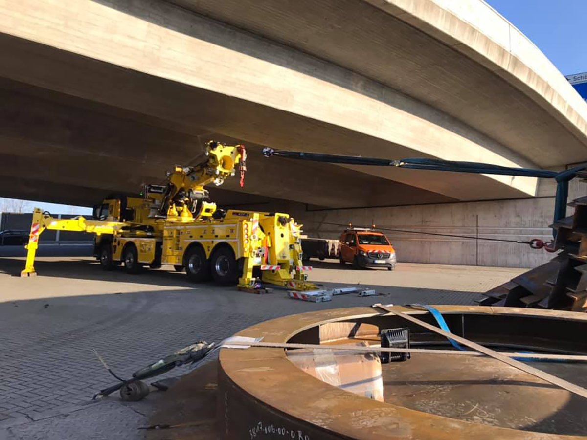 The recovery of accident-damaged vehicles that have left the roadway, for example from ditches. For these operations, we usually deploy a crane for car recoveries or a specialized four-axle recovery vehicle for truck recoveries.